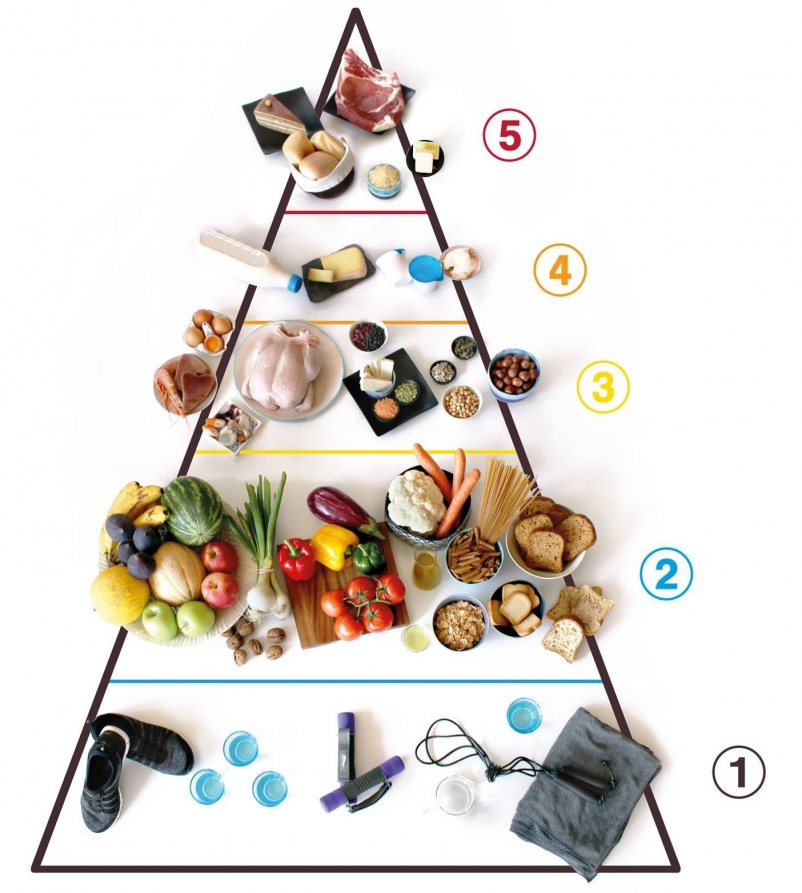 Koju hranu možemo jesti i koliko? Sa piramidom hrane bez glutena, lako je osigurati da na tanjuru imate zdravu hranu. Piramida na pet razina (1 – česta potrošnja, 5 – minimalna potrošnja) prikazuje od čega bi se trebala sastojati zdrava i uravnotežena hrana bez glutena: puno voća, povrća i žitarica, ograničenih životinjskih proizvoda i ograničenih masti i šećera.